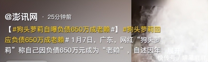 1日,有媒体发视频称,女网红狗头萝莉背万外债,被列入黑名单,限制高消费,成了老赖。